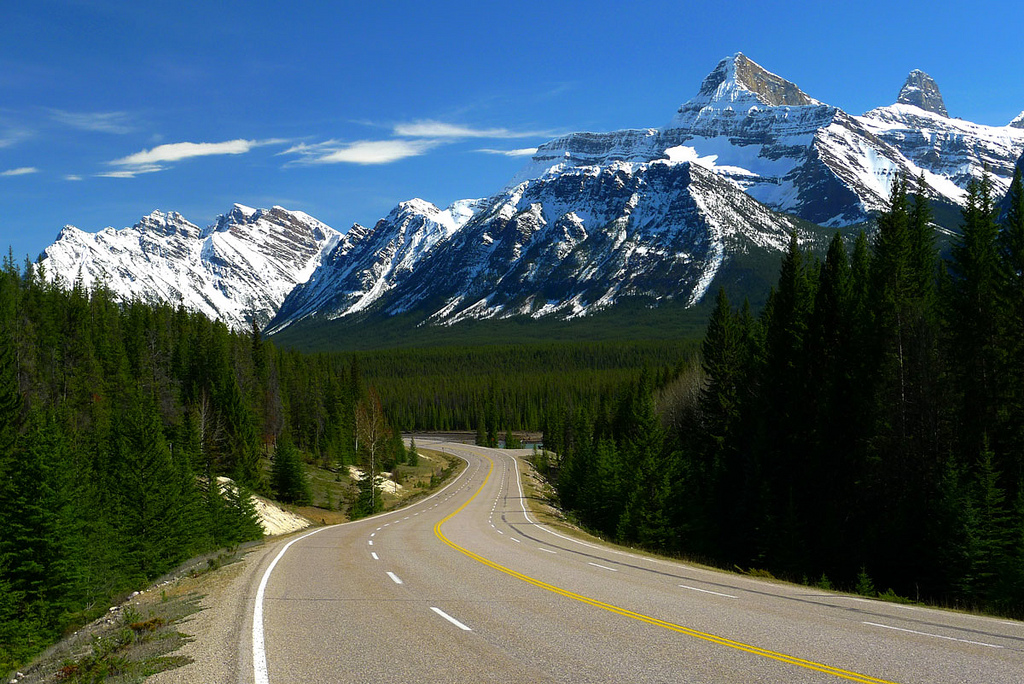 Une superbe route relie les deux parcs, Icefields Parway ou « la promenade des Champs de glace ». Construite pour mettre en valeur le paysage, la route est bien aménagée et jalonnée de nombreux points de vue. Chaînes de montagnes, lacs, glaciers se succéderont devant vos yeux ébahis.