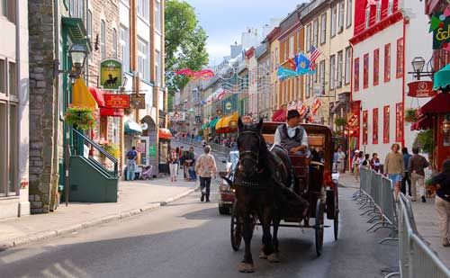 Entrée au Canada par la 'Old Canada Road Scenic Byway', une route panoramique fabuleuse où la rencontre avec un caribou n'est pas impossible... Arrivée dans la ville de Québec, berceau de la province du même nom et bastion de la culture française en Amérique du nord. Avec sa ville fortifiée et son quartier ancien du 'Vieux Québec', la cité figure sur la liste du patrimoine mondial de l’Unesco. Visite libre de la ville, avec sa fameuse promenade au pied du château Frontenac, qui offre une belle vue sur le Saint-Laurent. A la nuit tombée, le château éclairé donne un spectacle féérique.