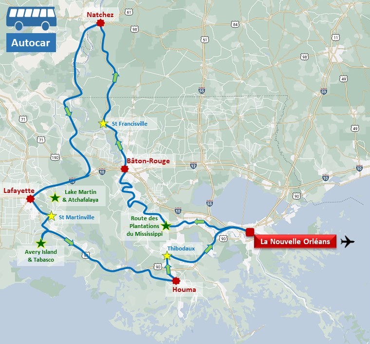 Un périple aux saveurs du Vieux Sud, l'Old South, avec ses plantations, ses rythmes créoles, le jazz New Orleans et les mystères des envoûtants bayous de Louisiane ! Une boucle autour de La Nouvelle Orléans, l'une de nos villes coup de coeur aux Etats-Unis, avec son quartier français et son atmosphère à nulle autre pareille, entre créolitude, musique, indolence et gastronomie ! Avec une petite incursion dans le Mississippi à Natchez.