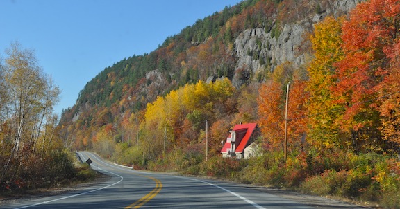 Ensuite, la route que vous prenez longe la rive sud du St-Laurent. A votre gauche, le fleuve et au delà, le massif des Laurentides. A votre droite, le massif des Appalaches. La route est longue, mais peut-être aurez-vous le temps d'aller voir les phoques au Parc du Bic.
