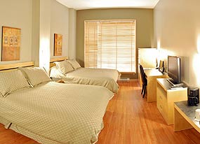 72 chambres modernes et spacieuses. Avec air conditionné et contrôle individuel de la température, télévision, coffret de sûreté, douche italienne, ordinateur avec accès internet haute vitesse gratuit, couette en duvet, cafetière, réfrigérateur, sèche-cheveux, planche et fer à repasser.