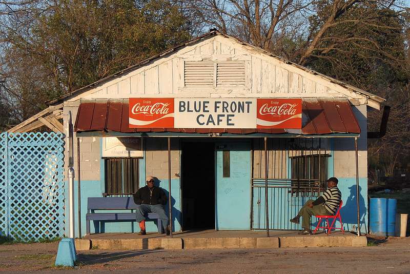 La trace part sur Bentonia et le Blue Front Cafe, un endroit mythique du Mississippi Blues Trail. Ouvert en 1948, il a accueilli les concerts improvisés (car longtemps interdits) de quelques grands bluesmen, à l'image de Skip James ou Sonny Boy Williamson. Il est aujourd'hui la propriété de Jimmy 'Duck' Holmes, qui gratifie de temps à autre les visiteurs d'un petit riff de guitare. Il y a un super festival de blues chaque année en juin.